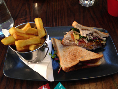 Tuesday, April 3rd: This was a very wet day and the view of the ocean was obscured by low hanging clouds, but we didn’t let that stop our fun! Though we tried to do a scenic drive along some hills, we decided checking out the North Coast’s coffee culture was the best way to spend the rainy day. However, we couldn’t start that before going on a tour of Old Bushmills Whiskey Distillery to taste some of Ireland’s most famous whiskey. With a bit of whiskey flowing in her veins, Shelby decided she wanted to get her cartilage pierced, so onto Coleraine we drove to Sailor Bill’s, aka a very dingy tattoo place that thankfully did not body pierce. While we were there we began our coffee tour, starting with Lost and Found for some rich lattes, refreshing earl grey tea, and the best frosted rhubarb loaf you’ll ever have. With the pastries kickstarting our digestive systems, we decided to head to Castlerock to eat a delicious bagel sandwich lunch at Crusoe’s. I promise you, we did look at some sights this day. We had a late afternoon hot cocoa stop at Bushmills Inn & Pub, had deep talks, and looked at secret libraries before driving to Portrush to eat dinner at Neptune & Prawn, a beautiful restaurant with the best lamb pancakes and chicken tikka.