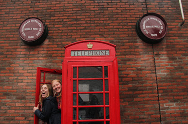 Wednesday, April 11th: Anne and Judith planned our whole day out, but didn't tell us what we were doing other than to bring a pair of clothes to get dirty in, and a pair of nice clothes. With excitement in our chests for what was to come, we fully surrendered ourselves to what they had planned. It began with a horse ride at Anne's best friend house! This was especially heart warming to Shelby because she had been talking about how it would be cool to horse back ride in Ireland. It was loads of fun to ride the horse, but my favorite part was the puppy running around that I got to play with. Next we made our way to our next suprise location— Leslie Castle for high tea! The castle was more like a mansion, but as equally luxurious and fun to look at. I am a total foodie, so the high tea was one of my favorite parts of the trips. The small little pastries ranging from tarts to macaroons paired with my loose leaf chai tea was something spectacular. We all felt like such ladies in with our fancy finger foods sitting in the elegant room. We then walked around the lake in our galoshes and acted out scenes from the Sound of Music as we walked along rolling hills. The walk lasted a few hours, and then we returned to the castle to change our shoes and continue to the next leg of the journey. A five minute walk up the grounds to my favorite restaurant of the trip by far, mostly for the setting, but the pizza was good too! We had our own private room, finished with a fireplaces and fun images decorating it. Our surprise day was over, but was by far one of the best and most touching days we had yet. That night we enjoyed our last few hours together with lots of laughs and good chats.